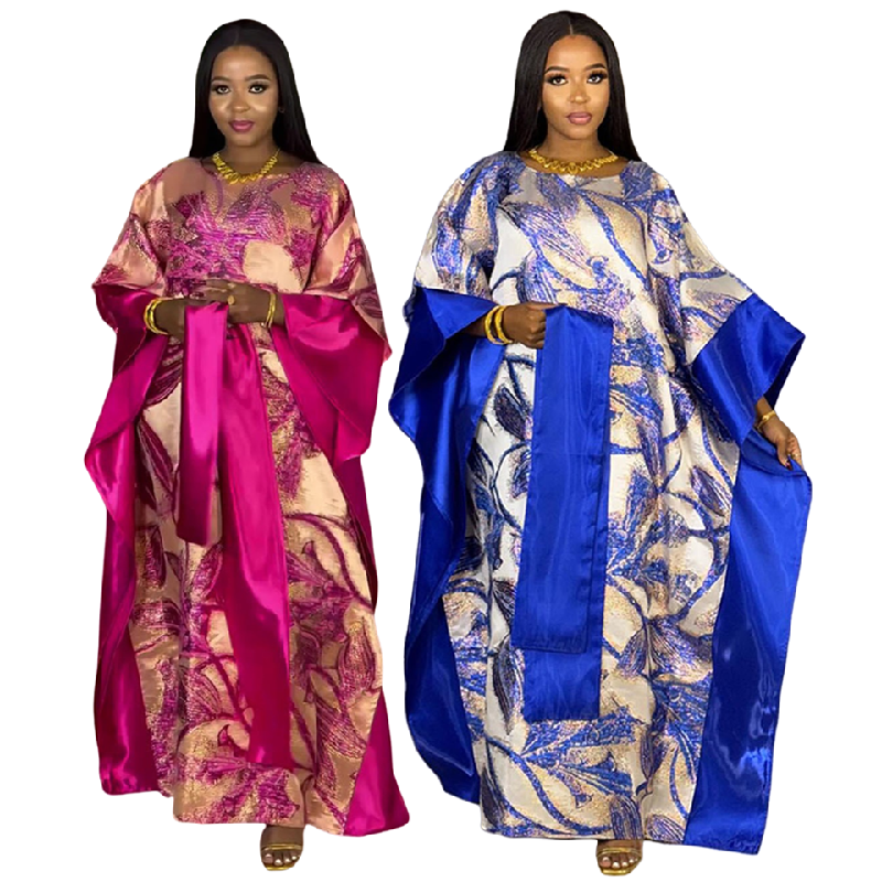 African Jacquard Abaya Dress for Women Satin Embroidered with Scarf