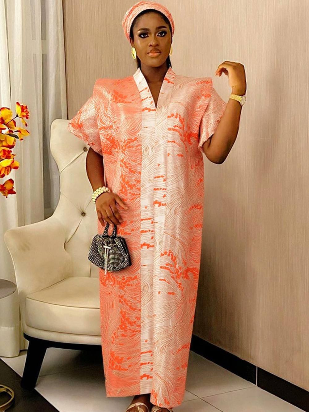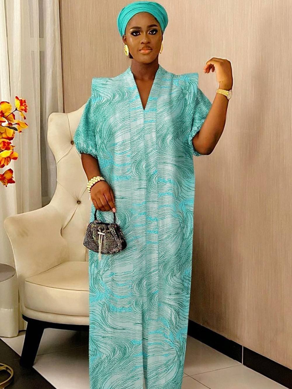 African Kaftan Boubou Dress for Women V-Neck Loose Fit with Headscarf