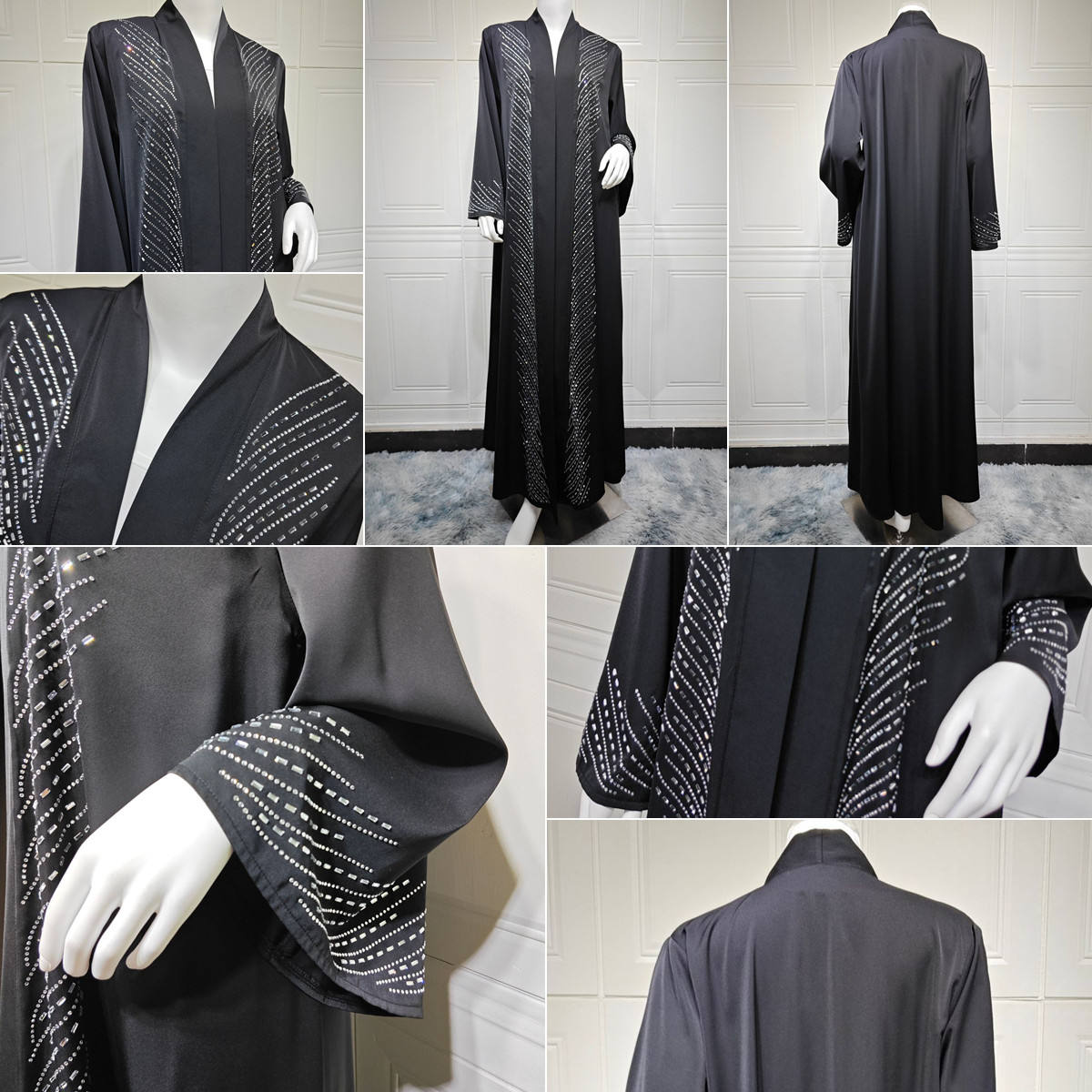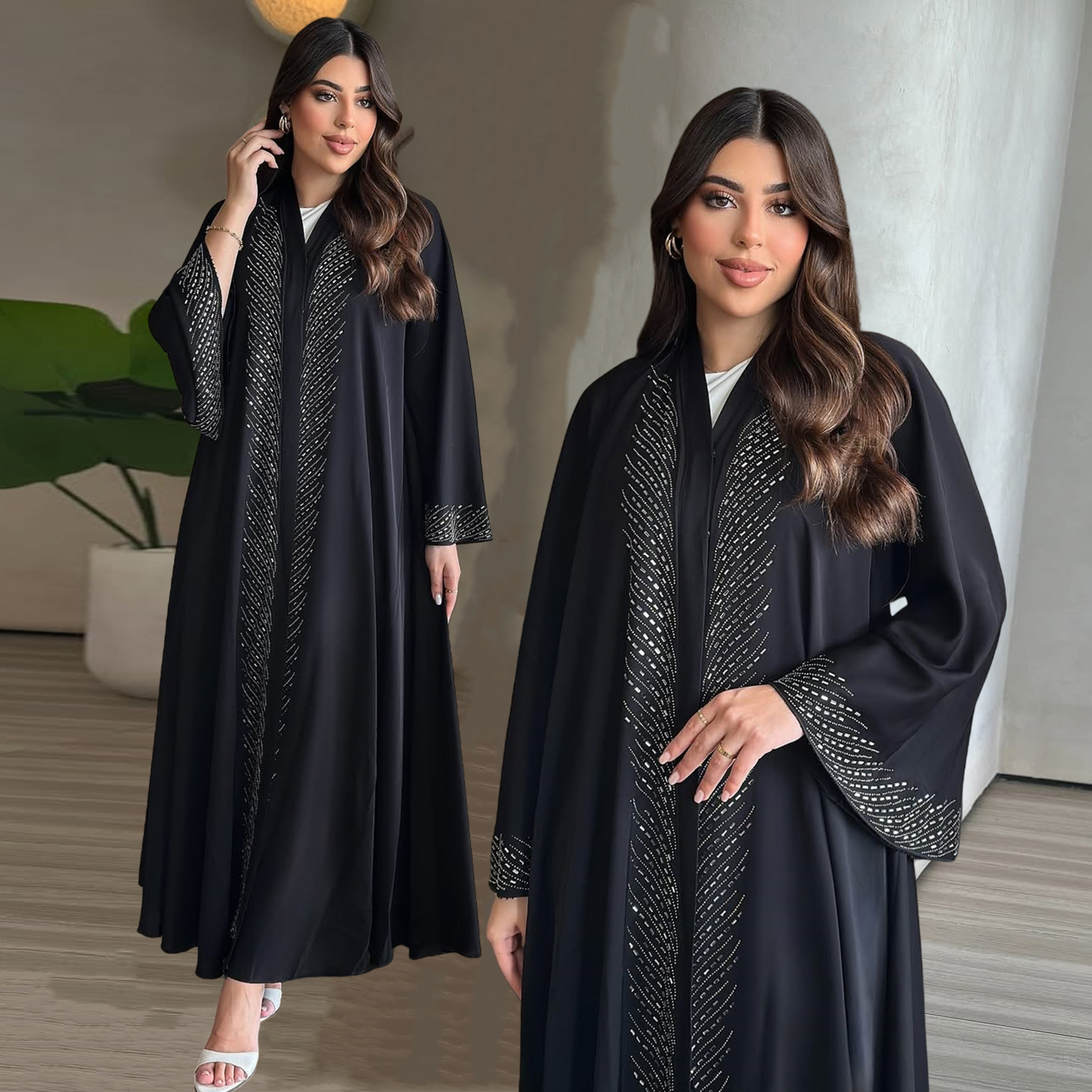 Black Open Abaya with Rhinestones | Modest Dubai Muslim Women's Robe