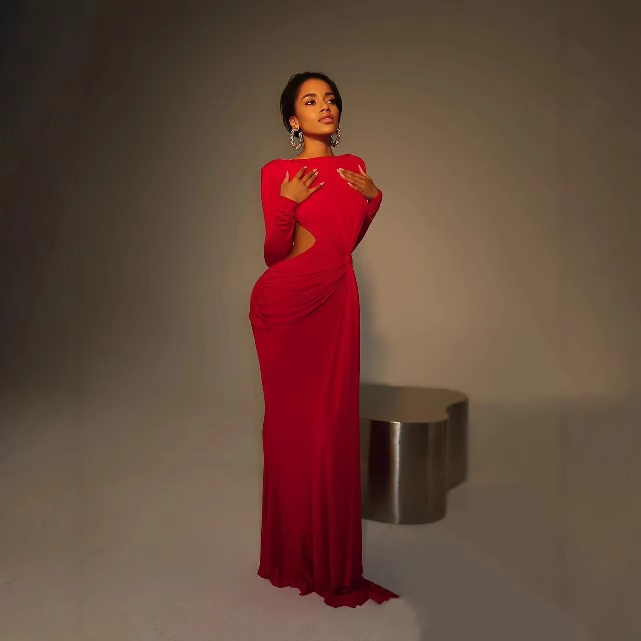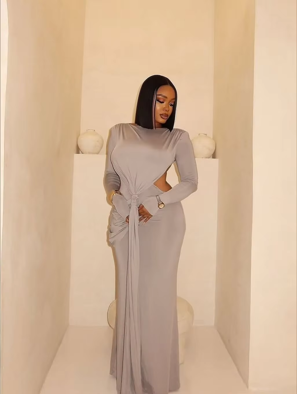 Elegant European American Women's Long Sleeve Slim Backless Floor-Length Dress
