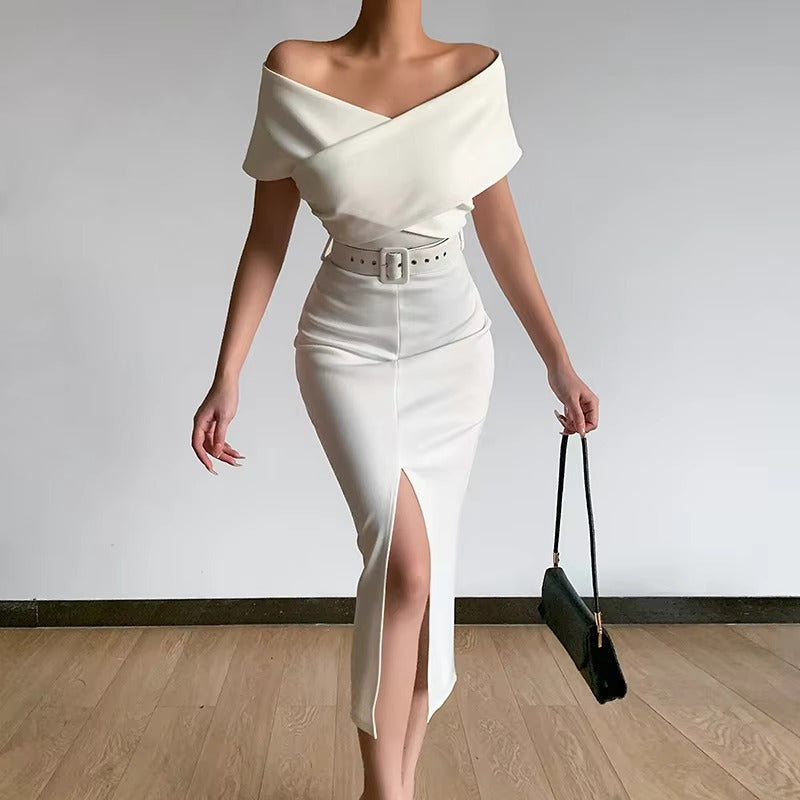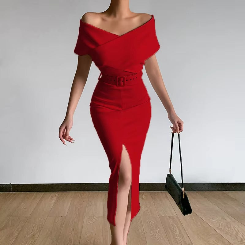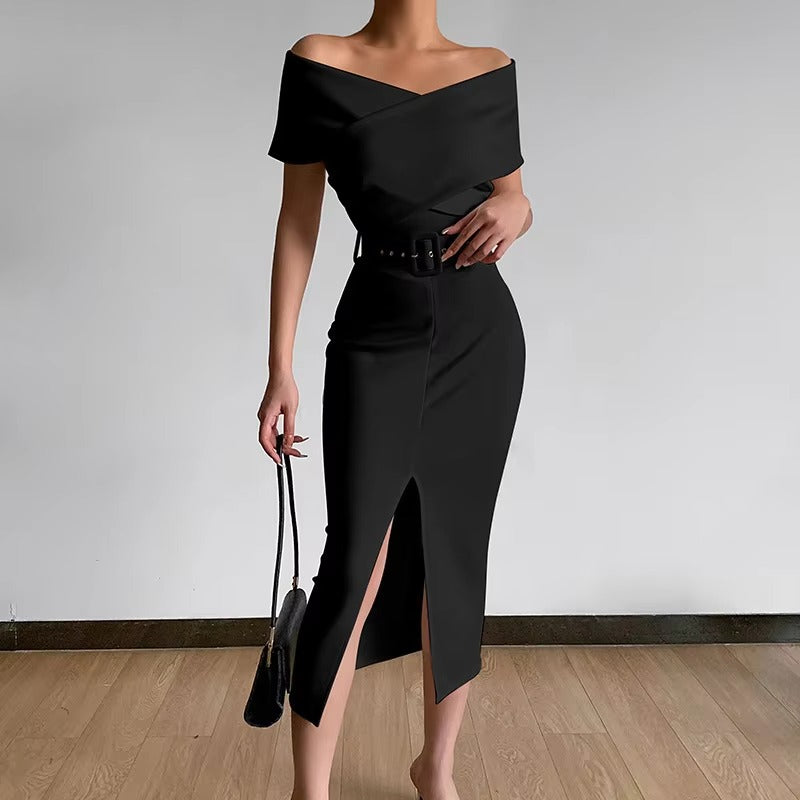 Elegant Solid Color Slit Dress for Women Spring Style
