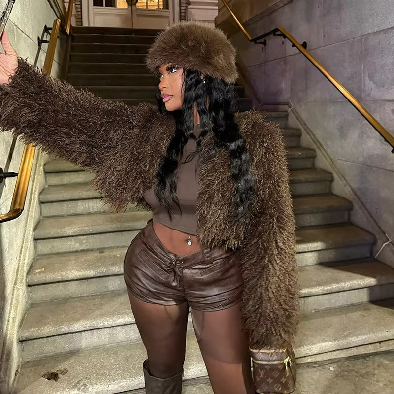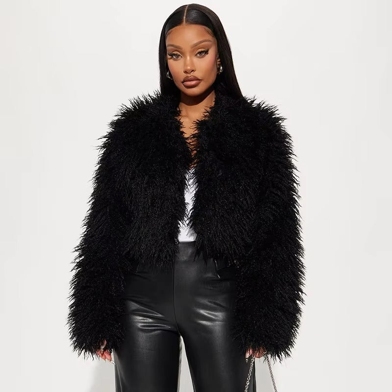 Europe Cross-Border Women's Autumn Sexy Fluffy Long Sleeve Cardigan Coat Top