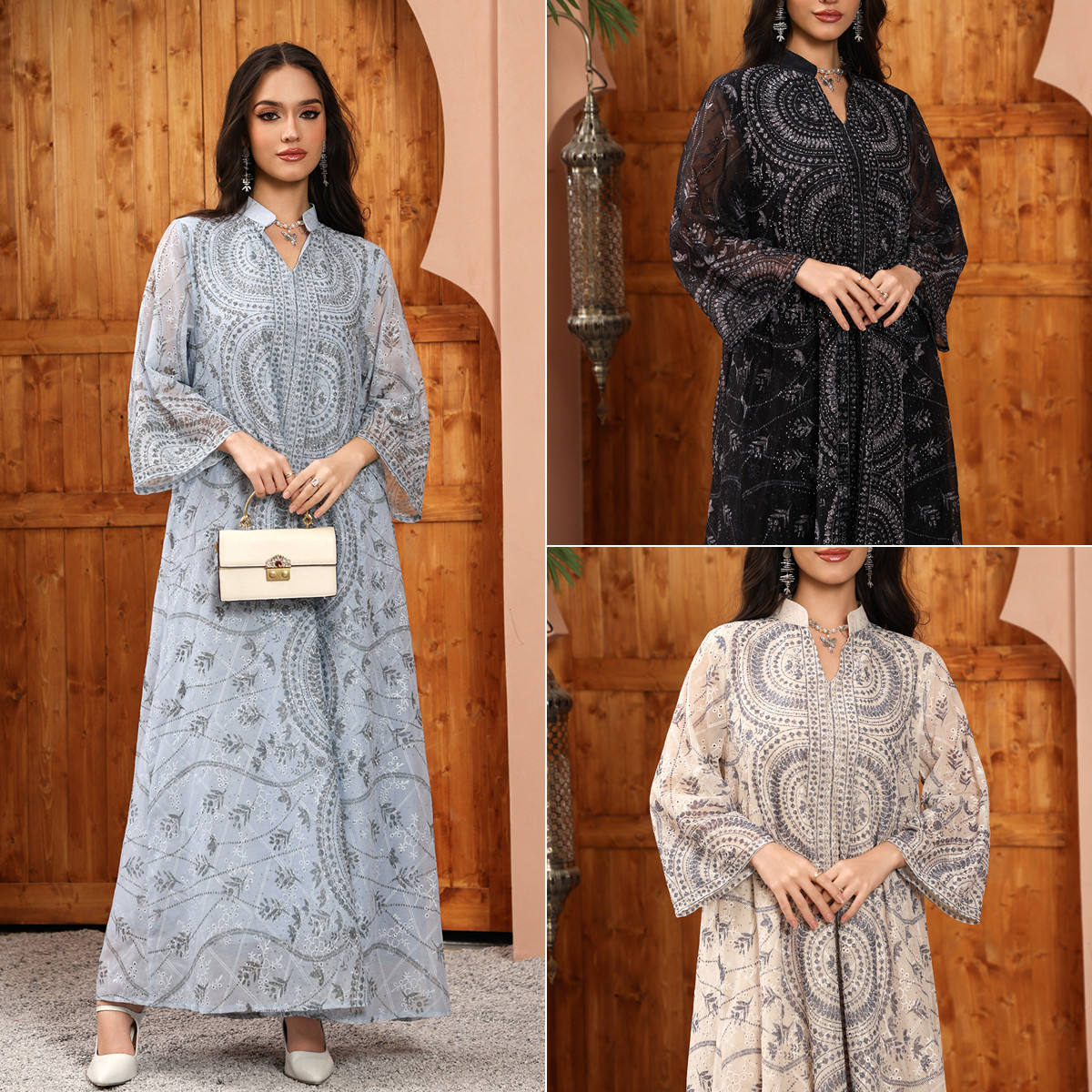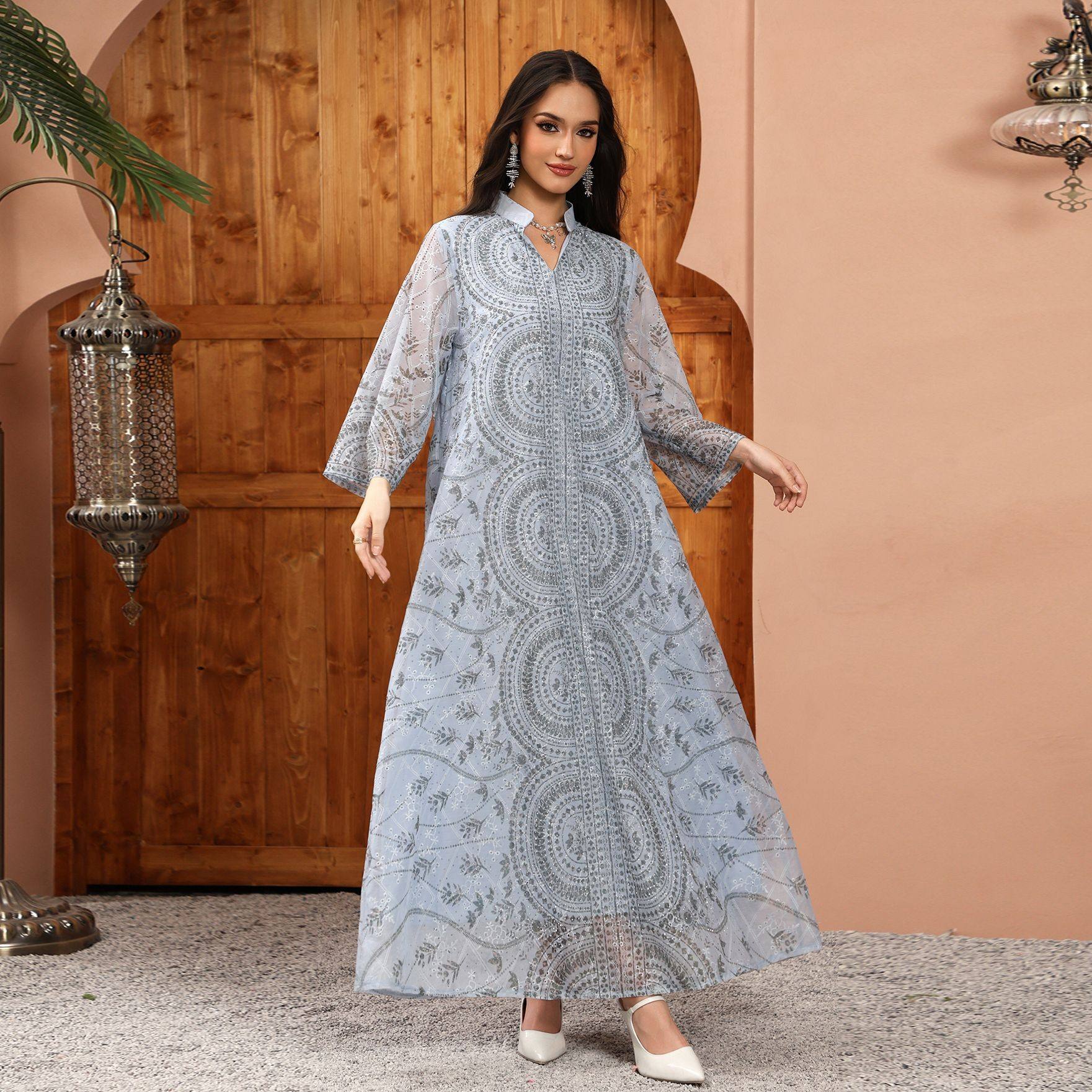 High Quality Rhinestone Abaya Dress for Women Breathable Dubai Kaftan