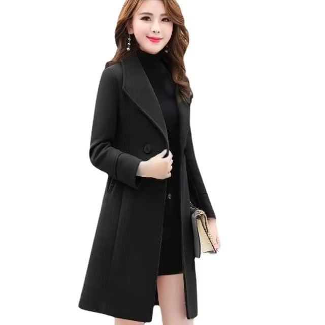 Korean Slim Mid-Length Women’s Coat 2024 Autumn Winter Plus Size