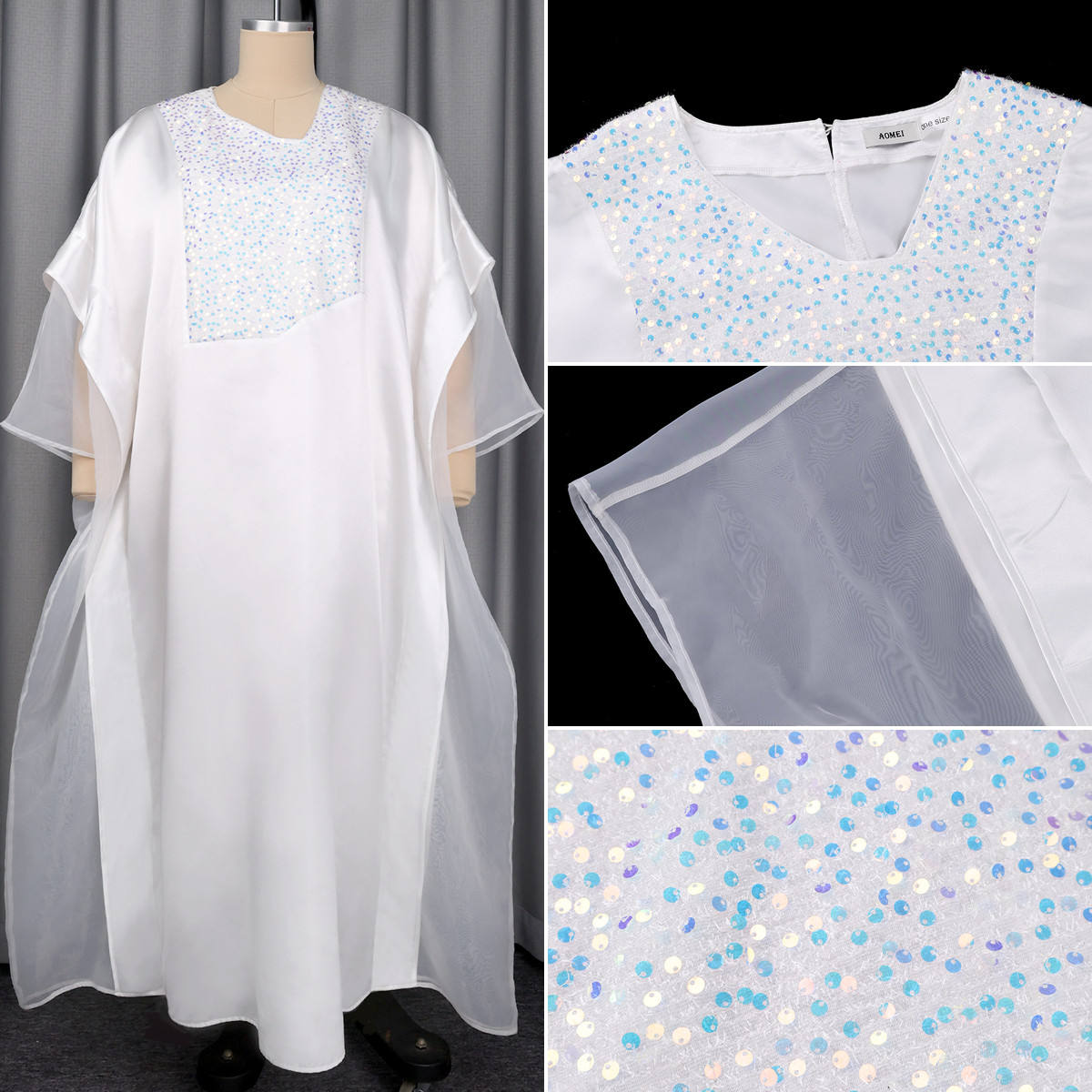 Luxury African Kaftan Party Dress for Women V Neck Sequined Dubai Boubou
