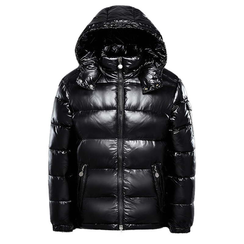Men's Black Shiny Puffer Jacket Hooded Winter Duck Down Coat Plus Size