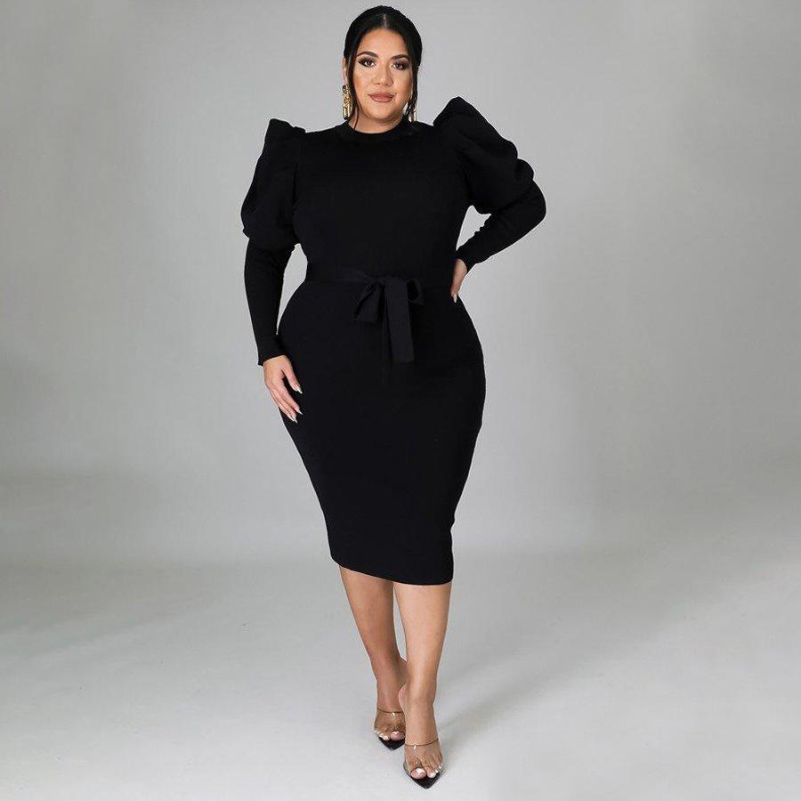 Plus Size African Church Dress for Women Lace Up Long Sleeve O Neck
