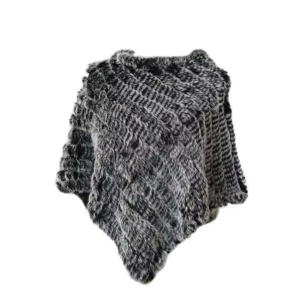 Real Rabbit Fur Knitted Poncho Vest Shawl Cape for Women