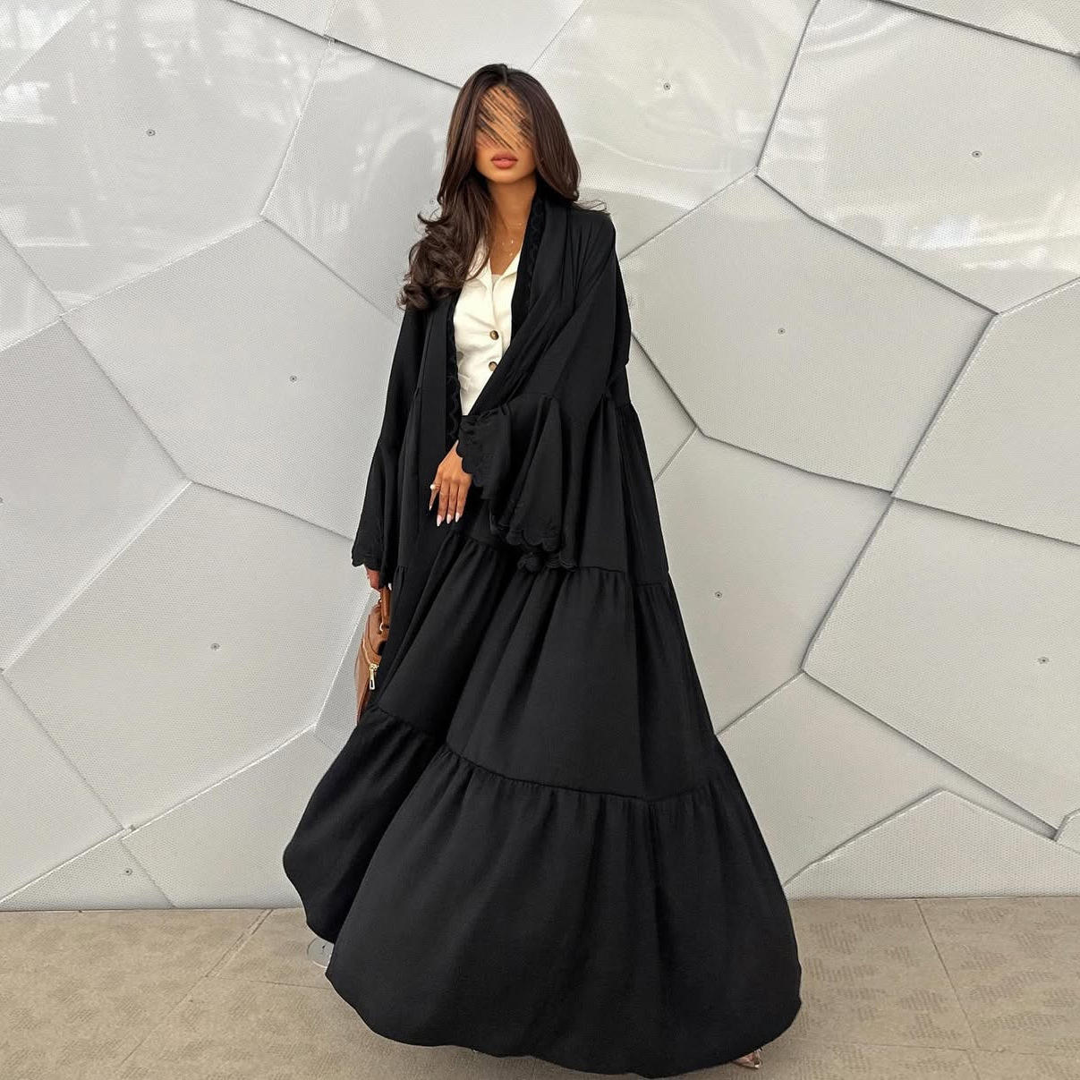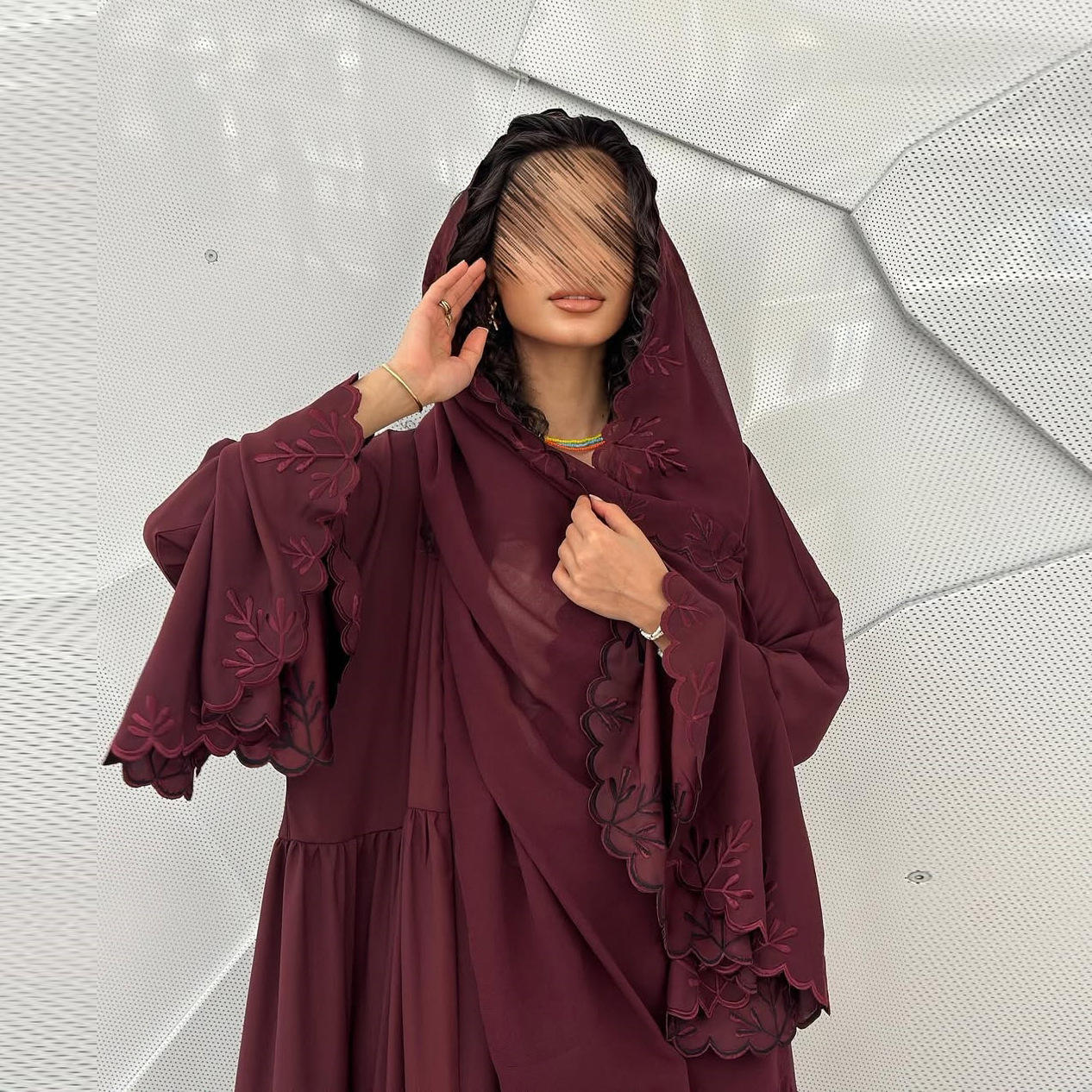 Summer Open Abaya Set with Hijab Embroidered Flare Sleeve Dubai