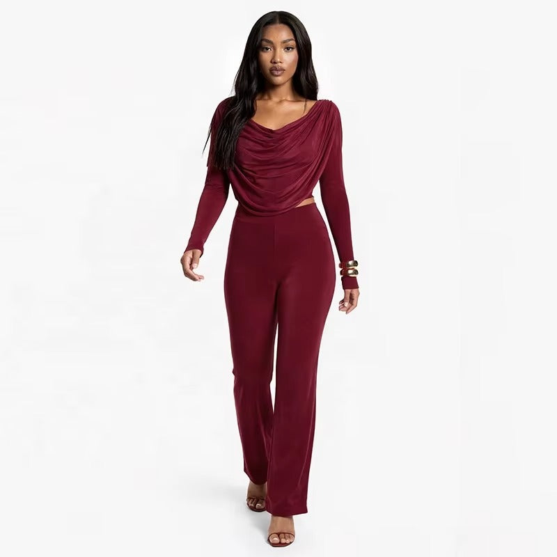 • Two piece casual set with swing collar top and matching pants
