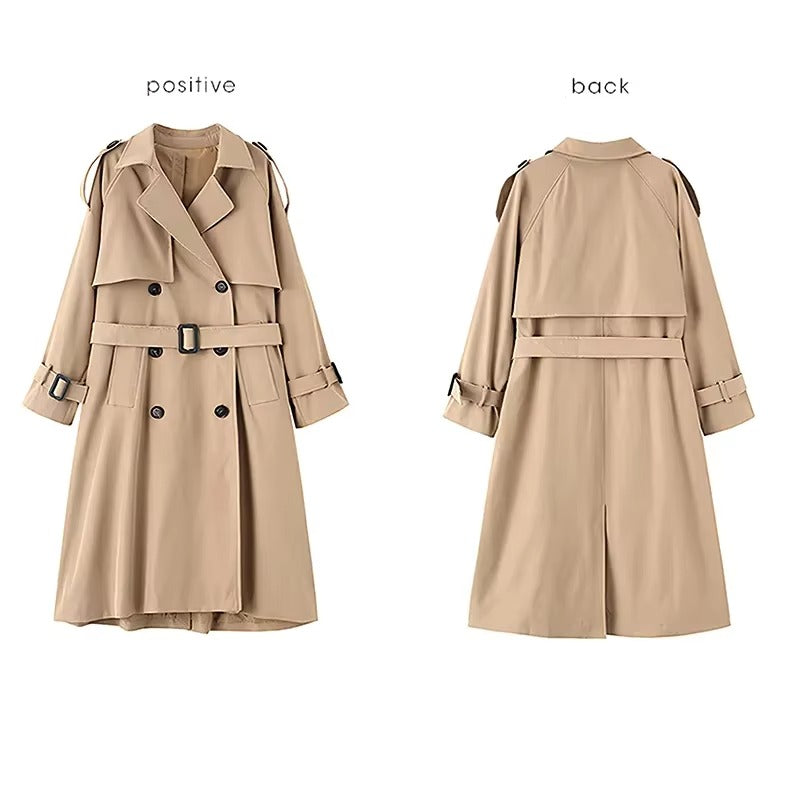 Women’s Double Breasted Long Trench Coat with Belt Winter Windbreaker