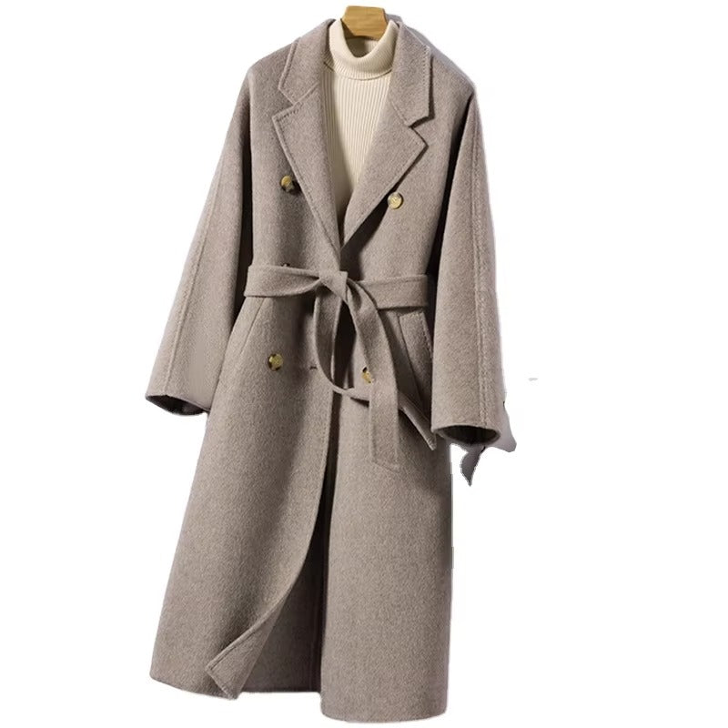 Women’s Double Breasted Wool Cashmere Long Winter Coat Korean Style