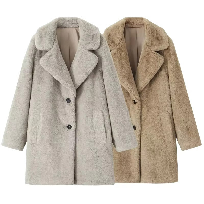 Women’s Faux Fur Coat Warm Lapel Jacket Soft Chic Winter Outerwear Long