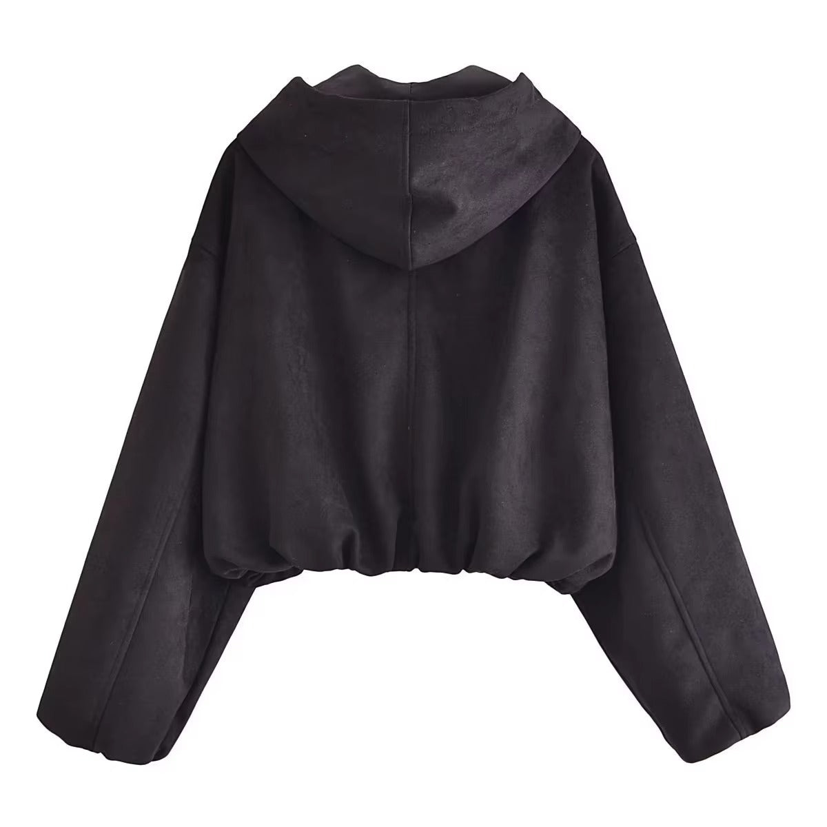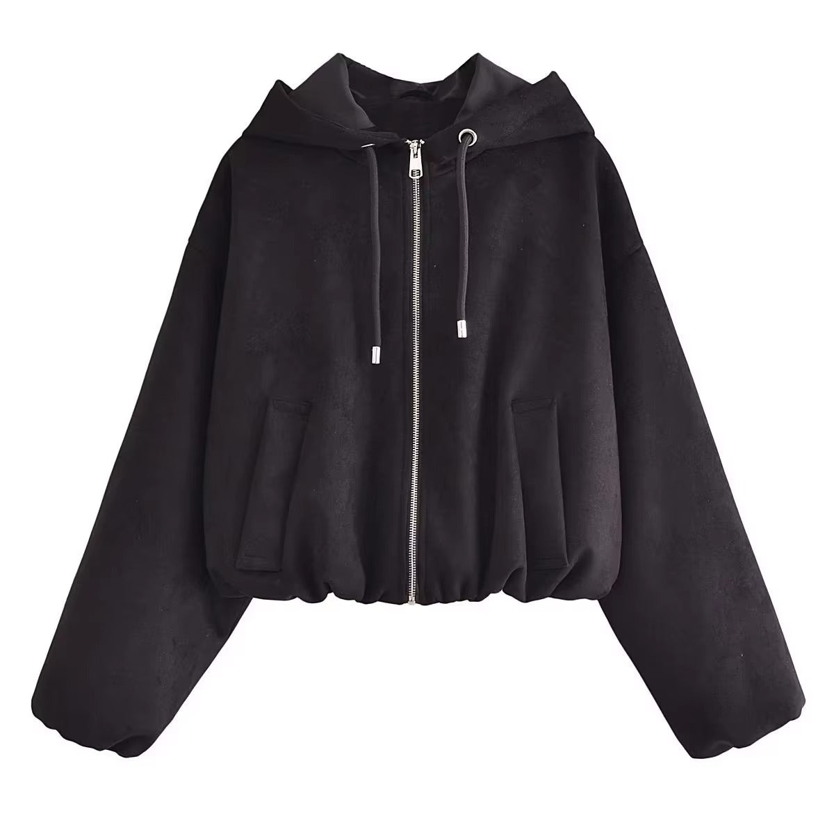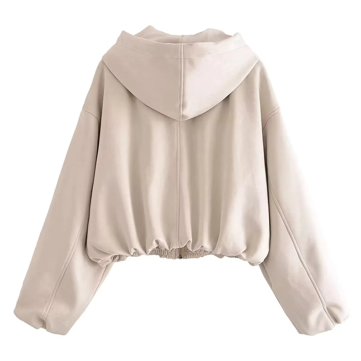 Women’s Hooded Zip Jacket Spring Autumn Solid Color Short Coat