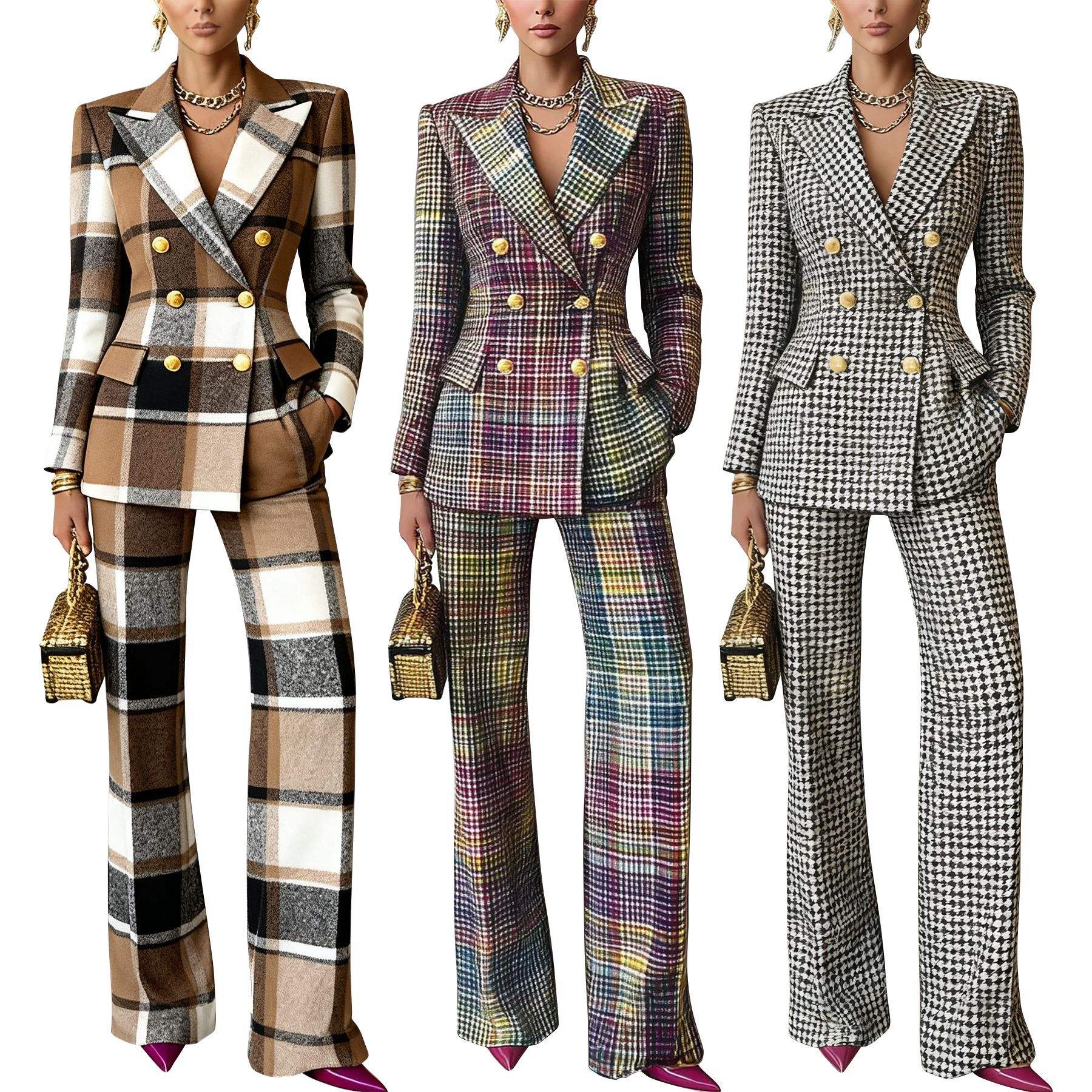 Women’s Plaid Blazer & Pants Suit Office Two-Piece Formal Set