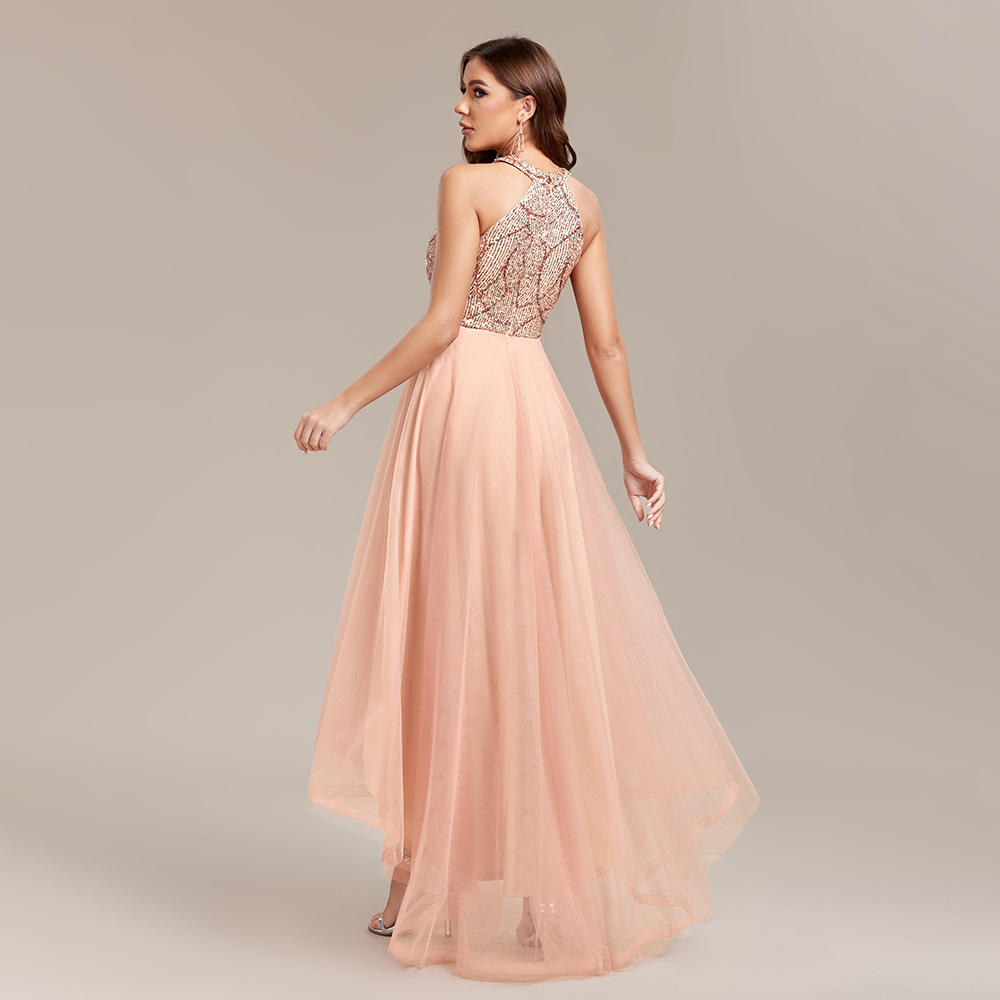 Women’s Sequin Halter Evening Gown Multi-Layer Mesh Prom Ball Dress