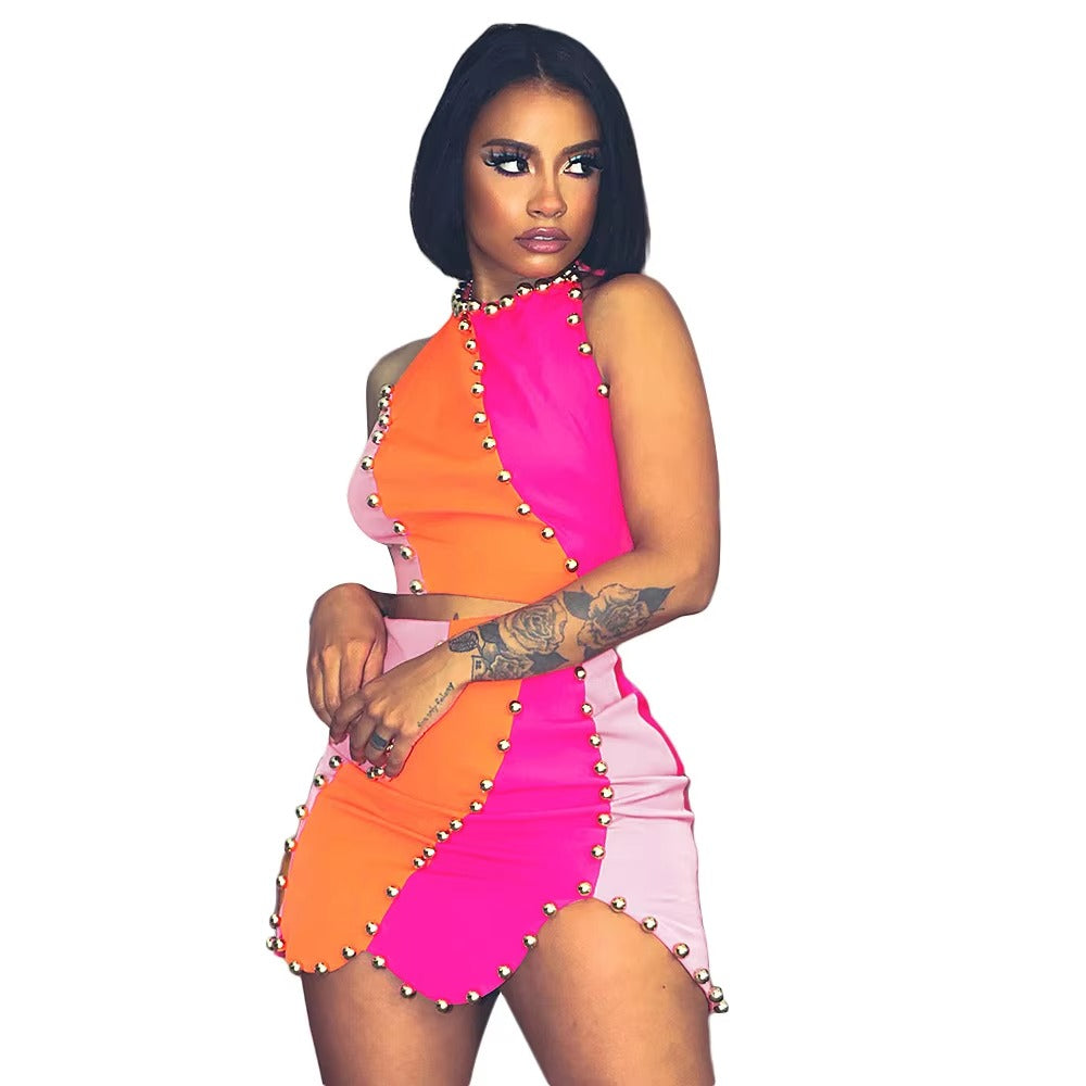 Women’s Sleeveless Crop Top & High-Waist Skirt Two-Piece Set
