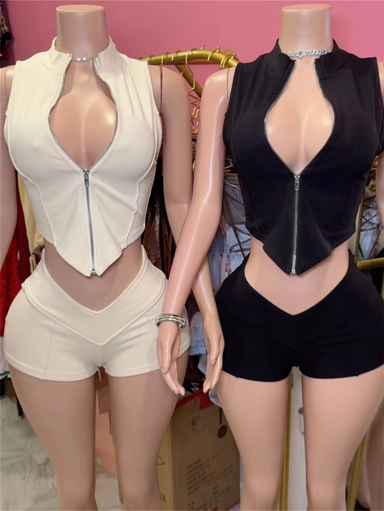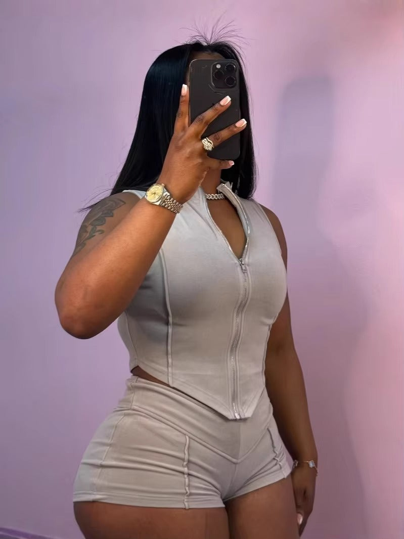 Women’s Summer Sleeveless V-Neck Zipper Top & High Waist Shorts Set 2025