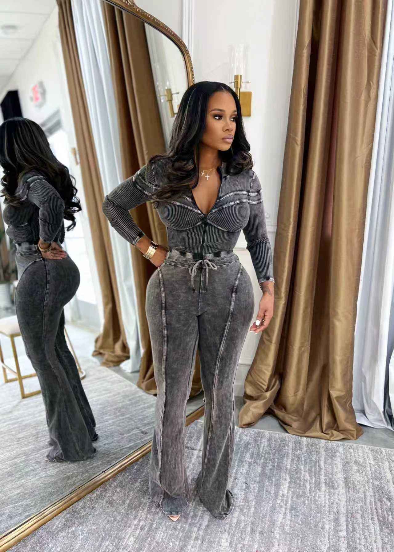 • Matching pants offer comfort with a clean silhouette