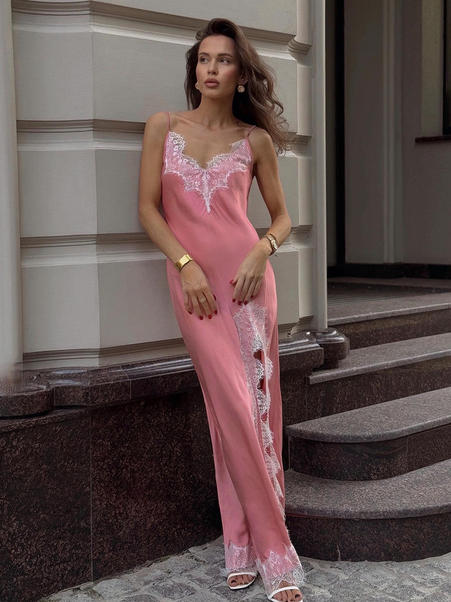 Women's Backless Halter Sleeveless Lace High Slit Summer Party Long Dress