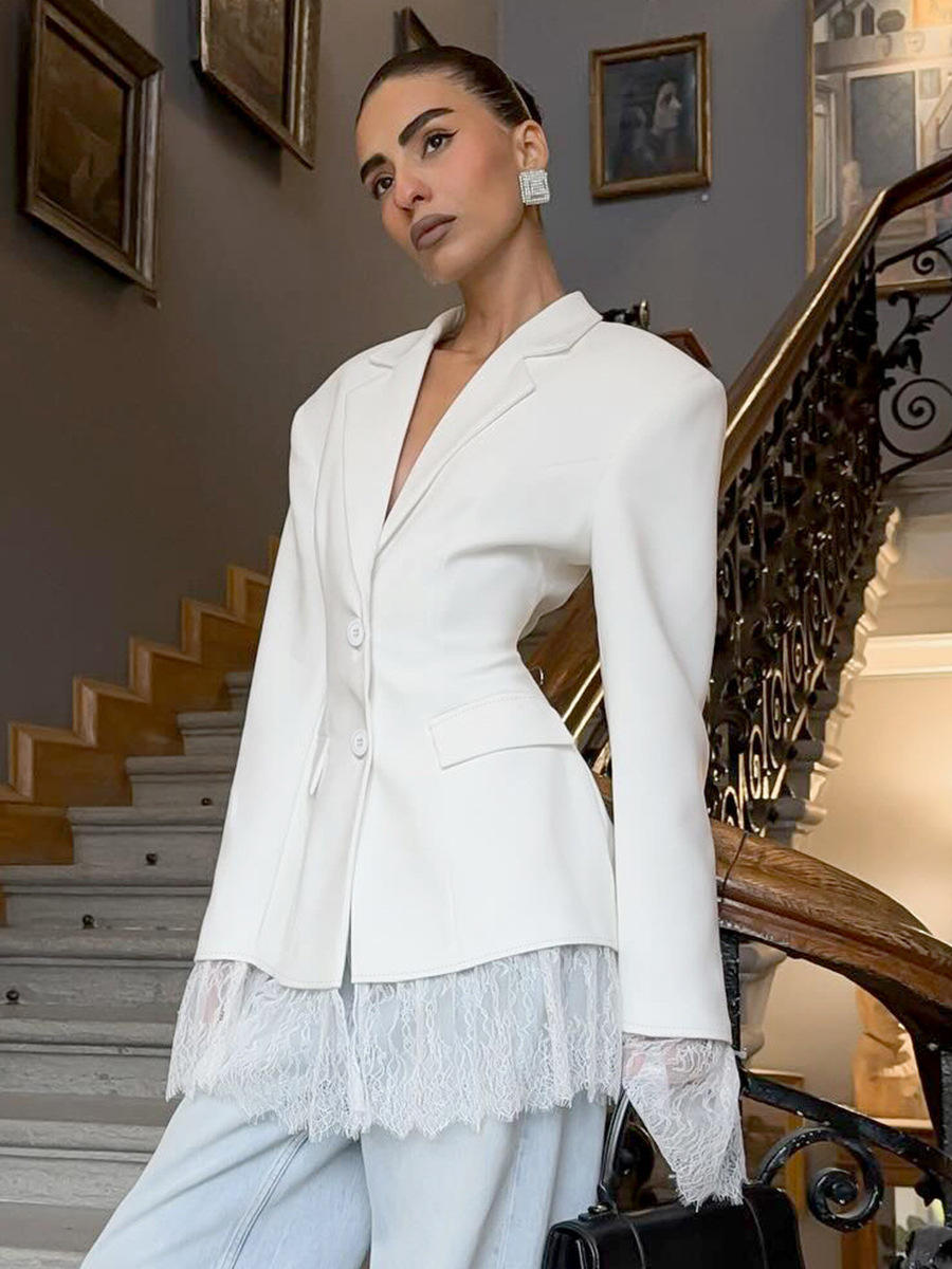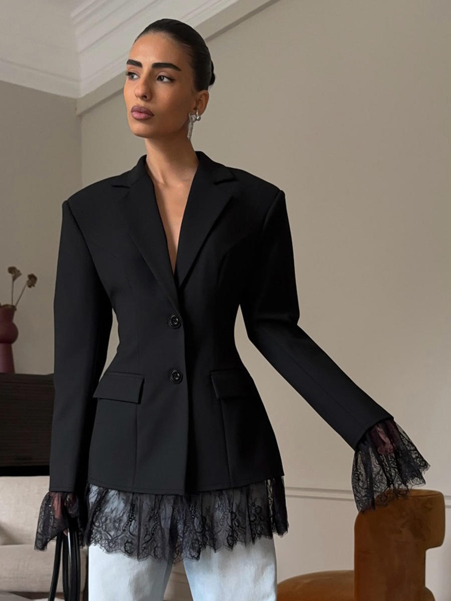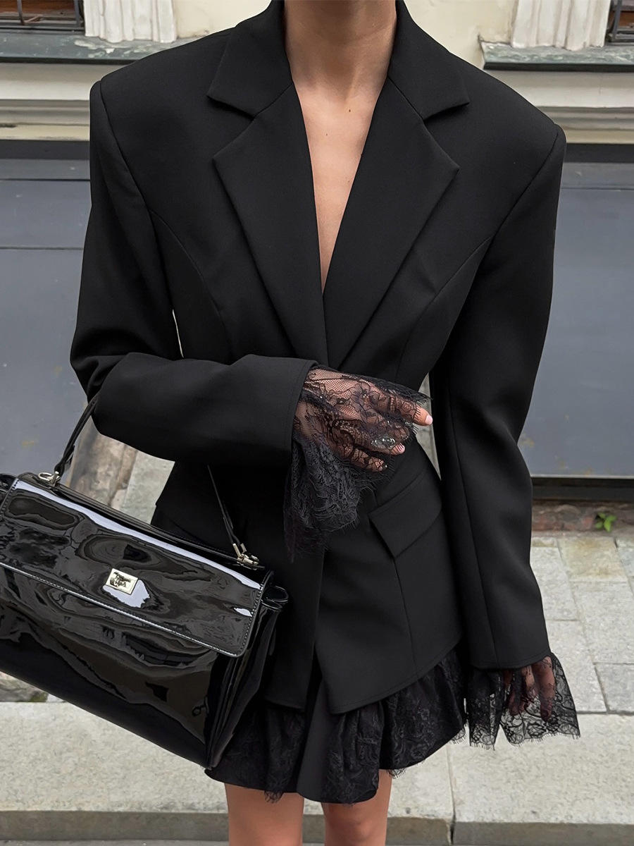 Women's Lapel Long Sleeve Single Breasted Lace Office Blazer Jacket