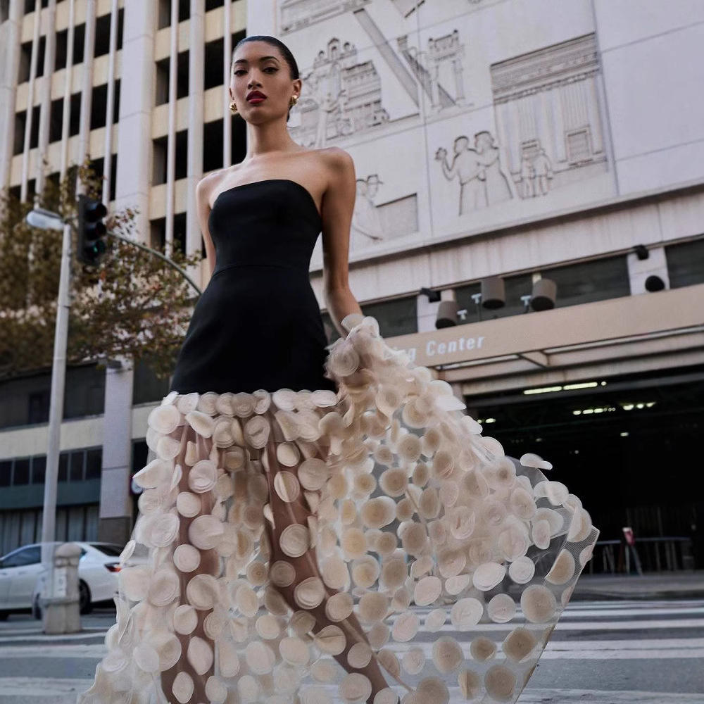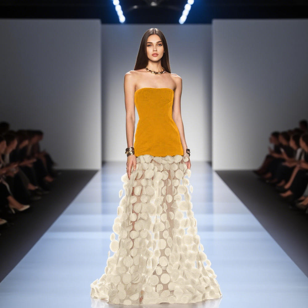 Women's Strapless 3D Polka Dot Slim Fit Summer Maxi Evening Dress