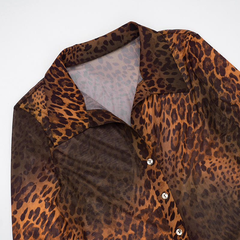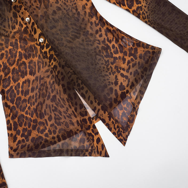 Y2K Women Mesh Print Shirt & Long Pants 2-Piece Casual Streetwear Set